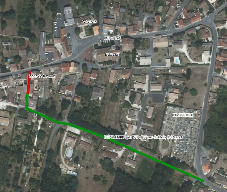 La circulation est interdite sur la rue des Caves du 23 février au 30 avril 2026. Une déviation est mise en place par la rue du Bois de Pageot.